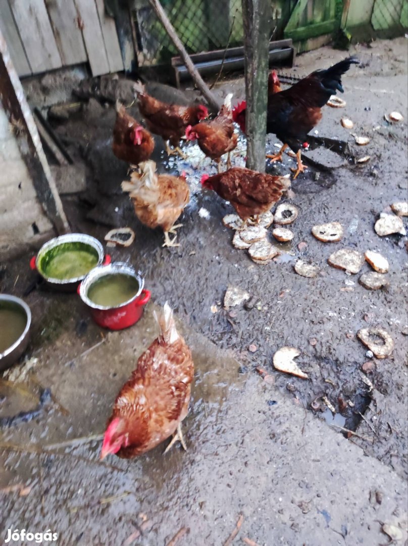 Eladó a képen látható 6 tyúk és egy darab kakas kb 1 évesek jó tojók