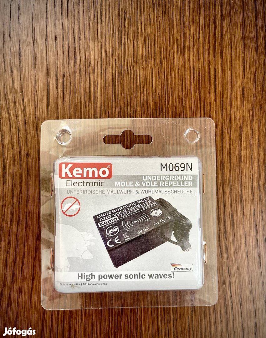 Professzionális német vakond riasztó, típusa Kemo M069N. Gyári, bontatlan készülék. (A telepítési útmutató egy másik, általam használt eszköz dobozából származik)