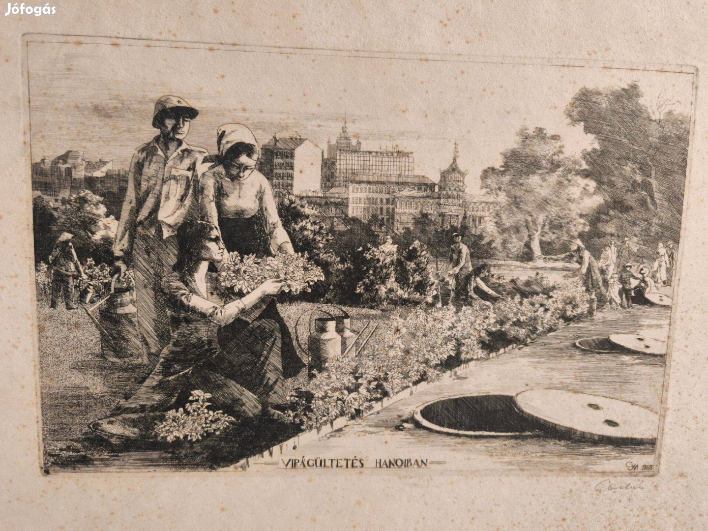 Vietnám , virágültetés Hanoiban , 1968 , rézkarc