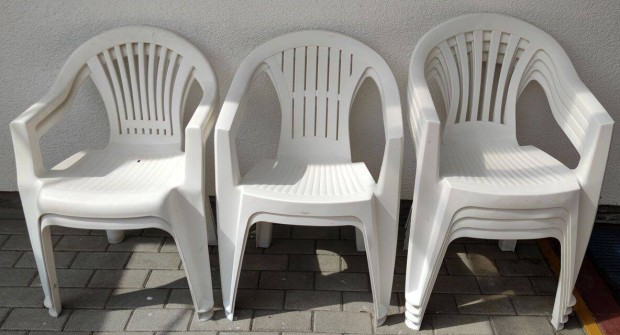 Fehér műanyag kerti székek + párnák 8 db egyben
