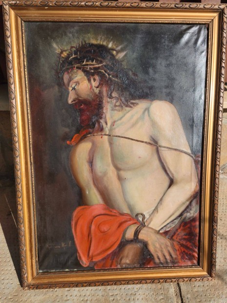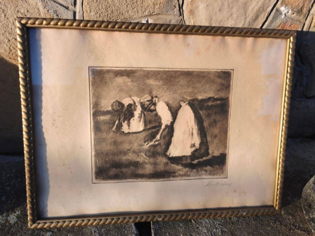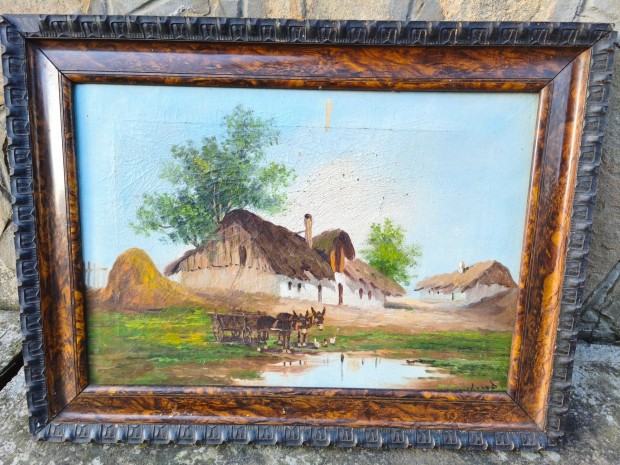 Mesterházy Dénes , szamárfogat a tanyán , festmény