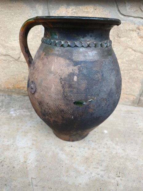 Régi nagyméretü népi kerámia korsó , 34 cm