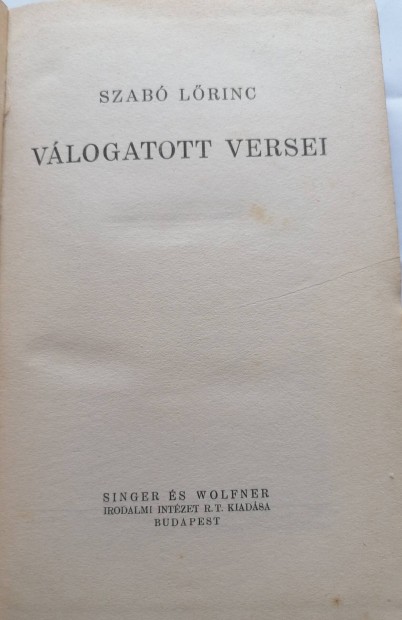 Szabó Lőrinc válogatott verseinek első kiadása!