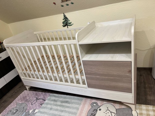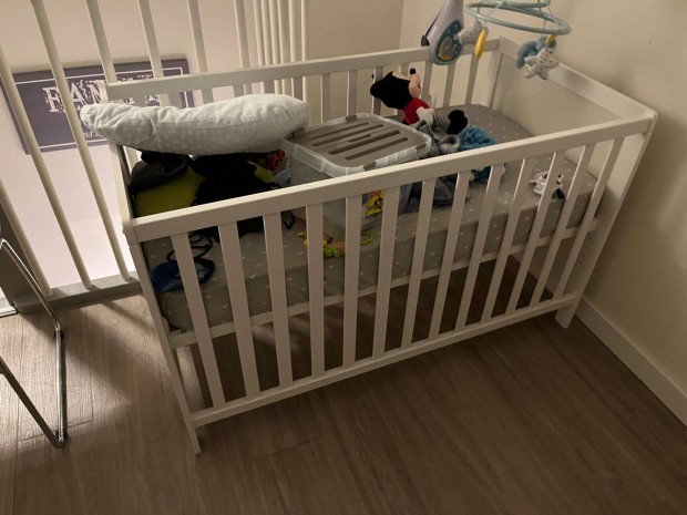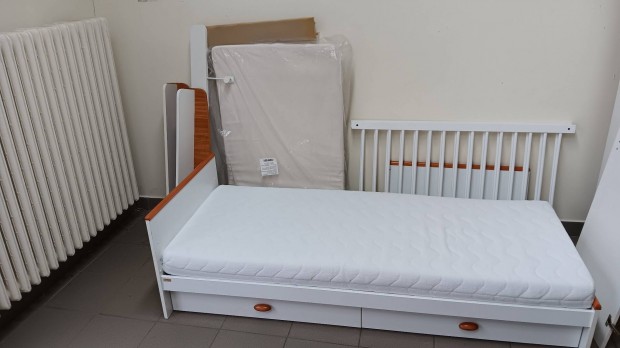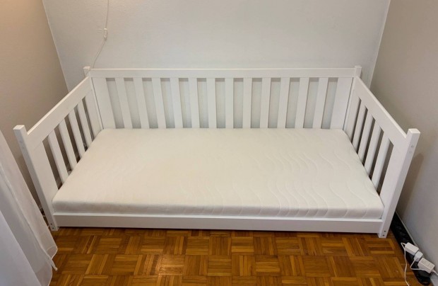 Babaágy - házikó alakú Ania - fenyő-fehér - matraccal