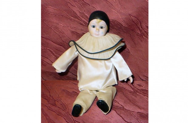 Régi vintage porcelán Pierrot bohóc baba 25 magassága:18 cm