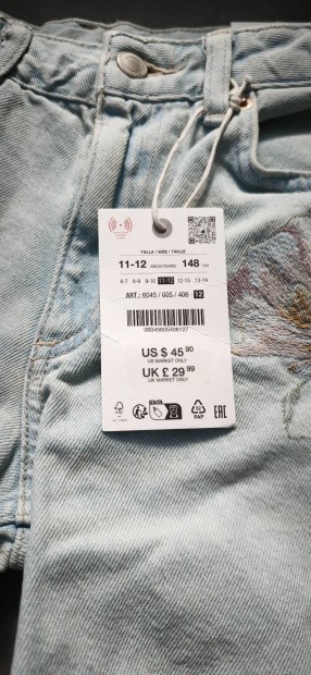Új Zara Hímzett Wide Leg Farmer (11-12 év / 148 cm) - Címkés!