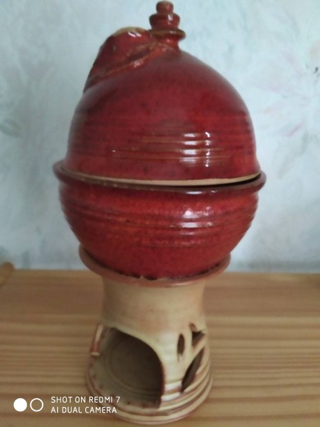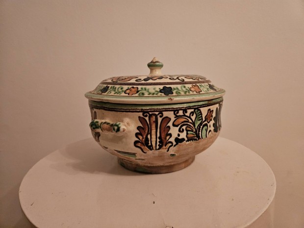 Régi mázas kerámia ramekin füles levesestál leveses csésze evőbögre