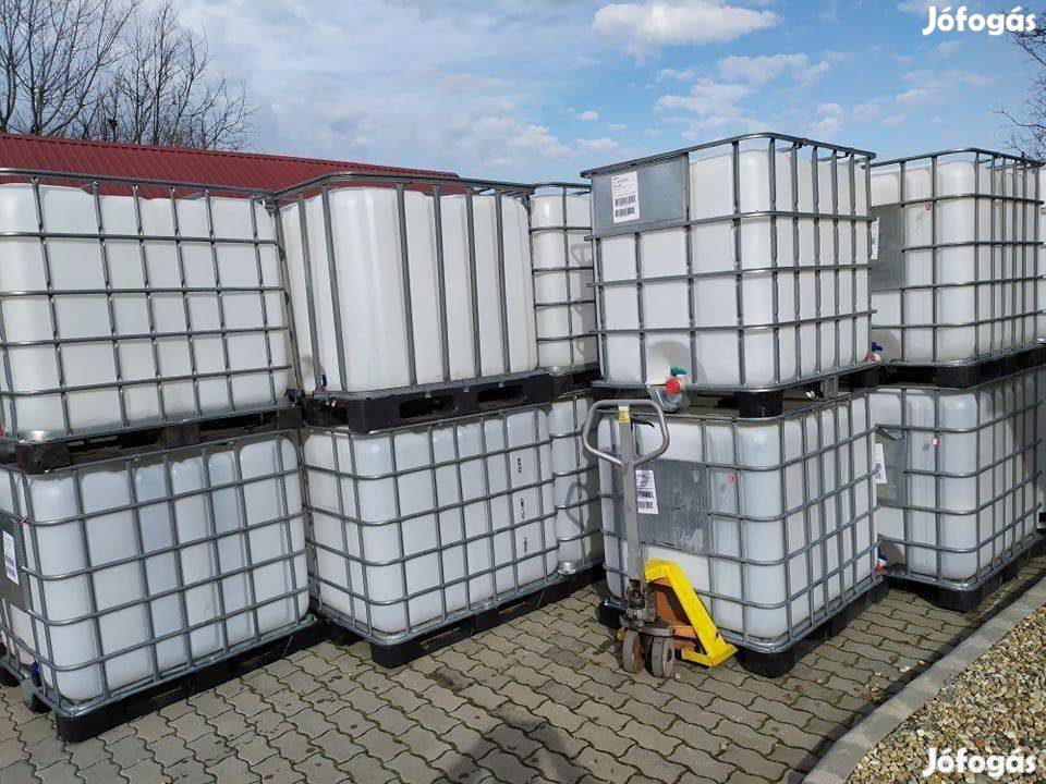 Eladó újszerű állapotban, 1000 literes IBC tartály, kompletten, ráccsal, raklappal, csappal.