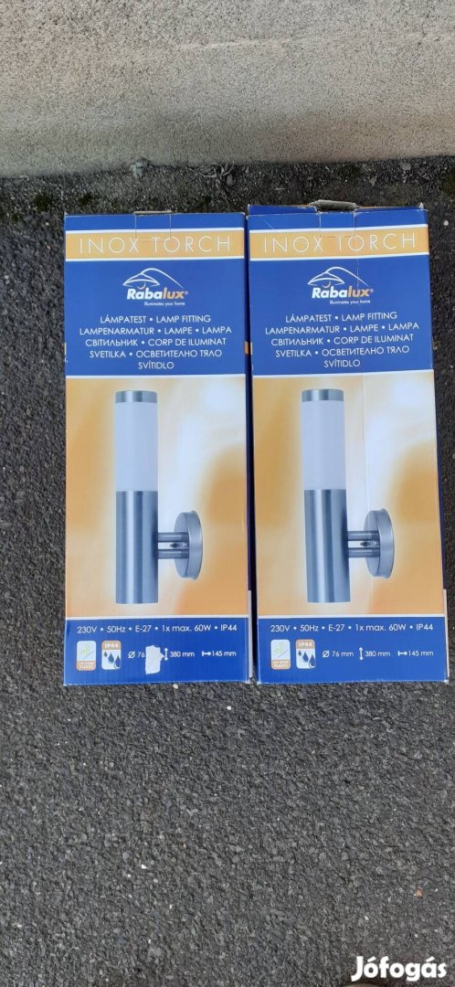 Inox falikar E27-es porcelán foglalattal szerelve.