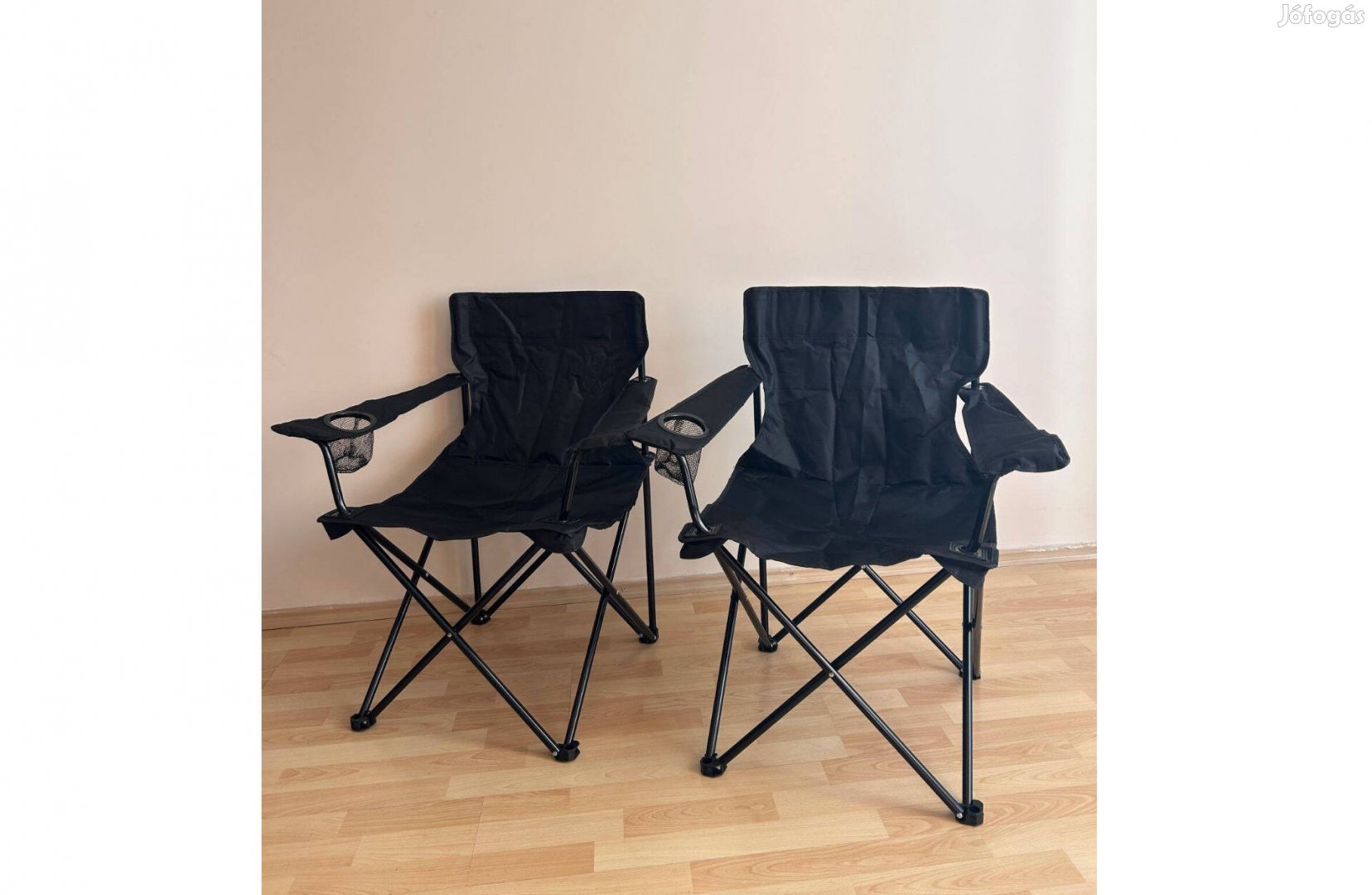 Eladó a képeken látható 2db új állapotú összecsukható, kemping , vagy horgászszék . Kényelmes, masszív szék pohártartóval ellátva, összecsukva kis helyen tárolható . Tartós csővázas acél keret , erős műszálas vászon ( vízálló ) ülőfelület , puha kartámasz .