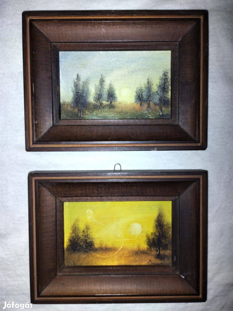 Kettő db egyforma méretű, bekeretezett, kisméretű kép, együtt eladó.