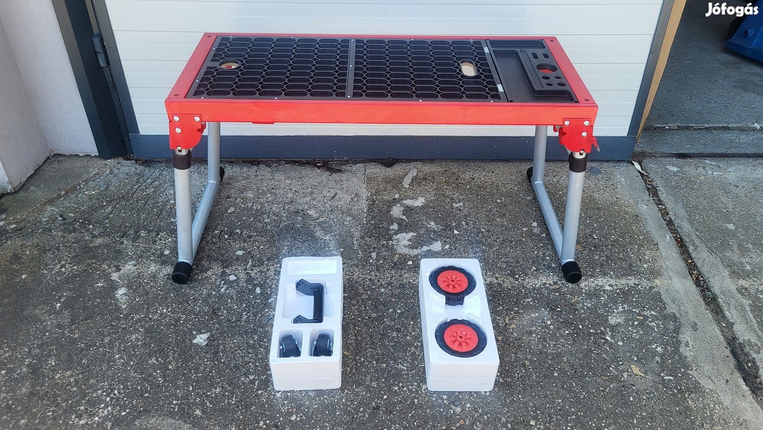 Sokoldalúan felhasználható: Munkapadként Munkaplatformként Szállítókocsiként Görgős deszkaként Néhány lépésben állítható Jól megtervezett munkafelület különféle munkaeszközökkel