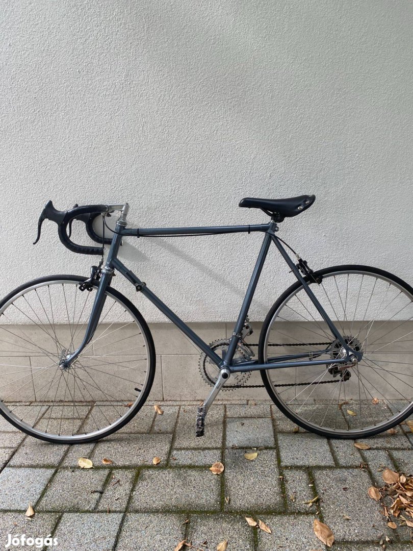 Versenykerékpár felújított, újszerű állapotban eladó. Autófényező Mester által festett gyöngyház-metál antracit szürke színű festéssel, és lakk fedőréteggel. Új csapágyak, hajtás, fékbetét, bovdenek, bovdenvezető, bandázs, ülés, monoblok, lánc és külső-belső gumik, Mavic kerekekkel. Újra szakszerűen összerakott, zsírozott szép esztétikai állapotú kerékpár. Tökéletesen működő váltókkal. Vázméret: 28, 58-as. Magánszemély tulajdonostól, igény esetén adás - vételi szerződéssel, melybe a váz sorszáma is rögzítésre kerül. Helyszínen kipróbálható. Szállítás a Jófogáson keresztül beállítva. Nyíregyházán átvehető.
