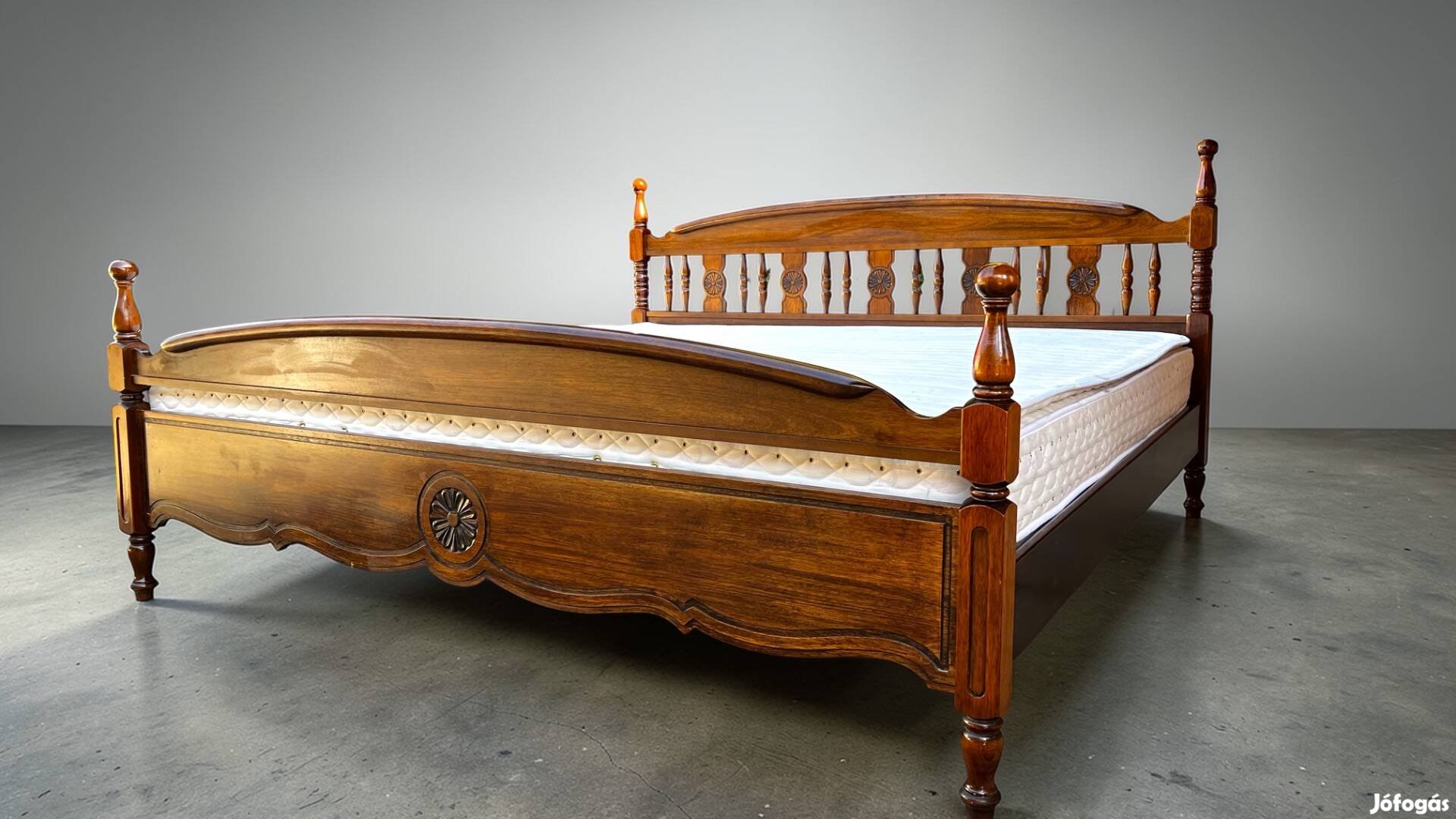 Szép állapotban nagyméretű tömör fa franciaágy eladó kompletten ágyráccsal, matraccal. Matrac vastagság 23cm.