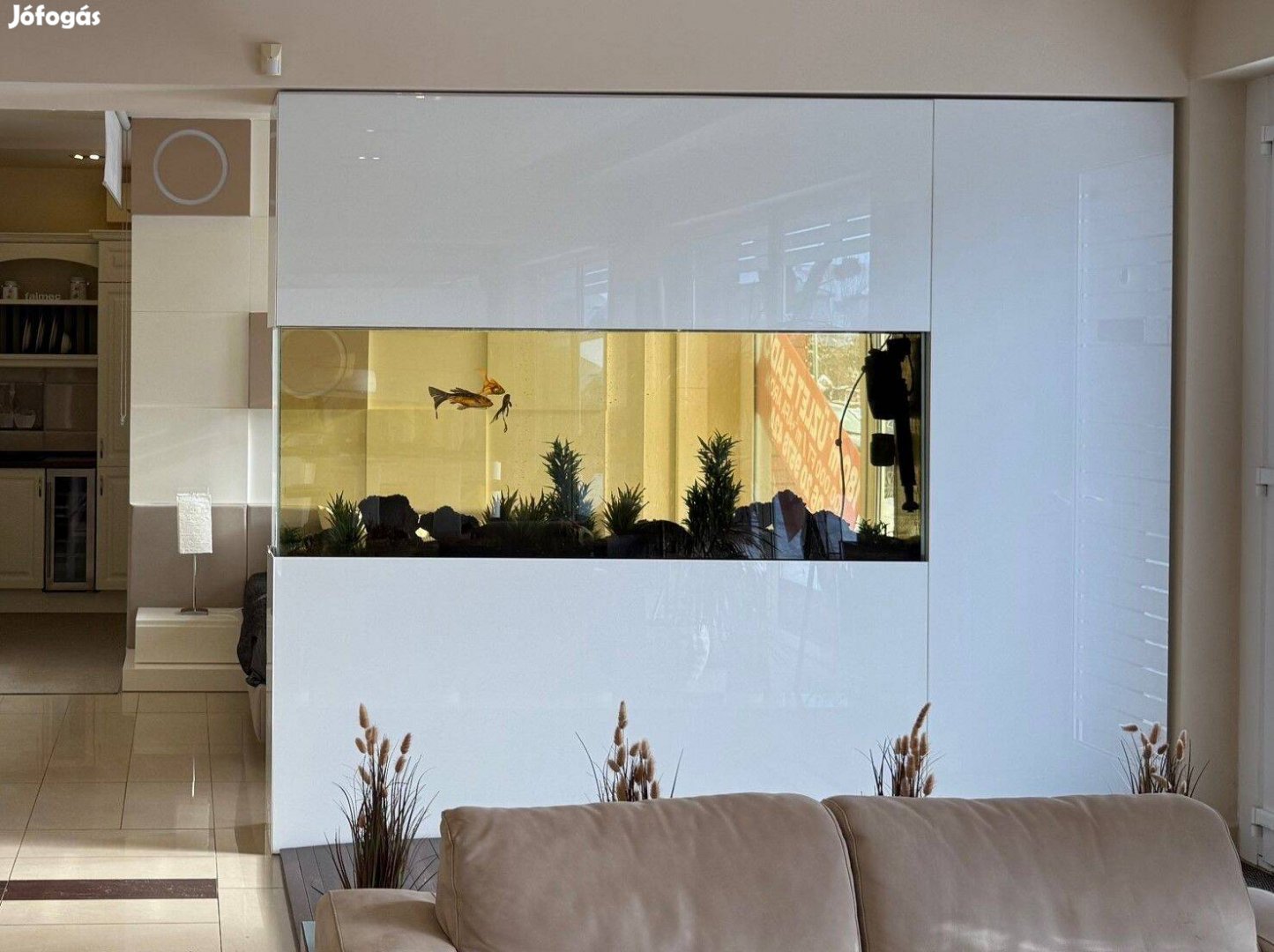 Akciós - Óriás akvárium fehér bútorlap váz ragasztott festett üveg