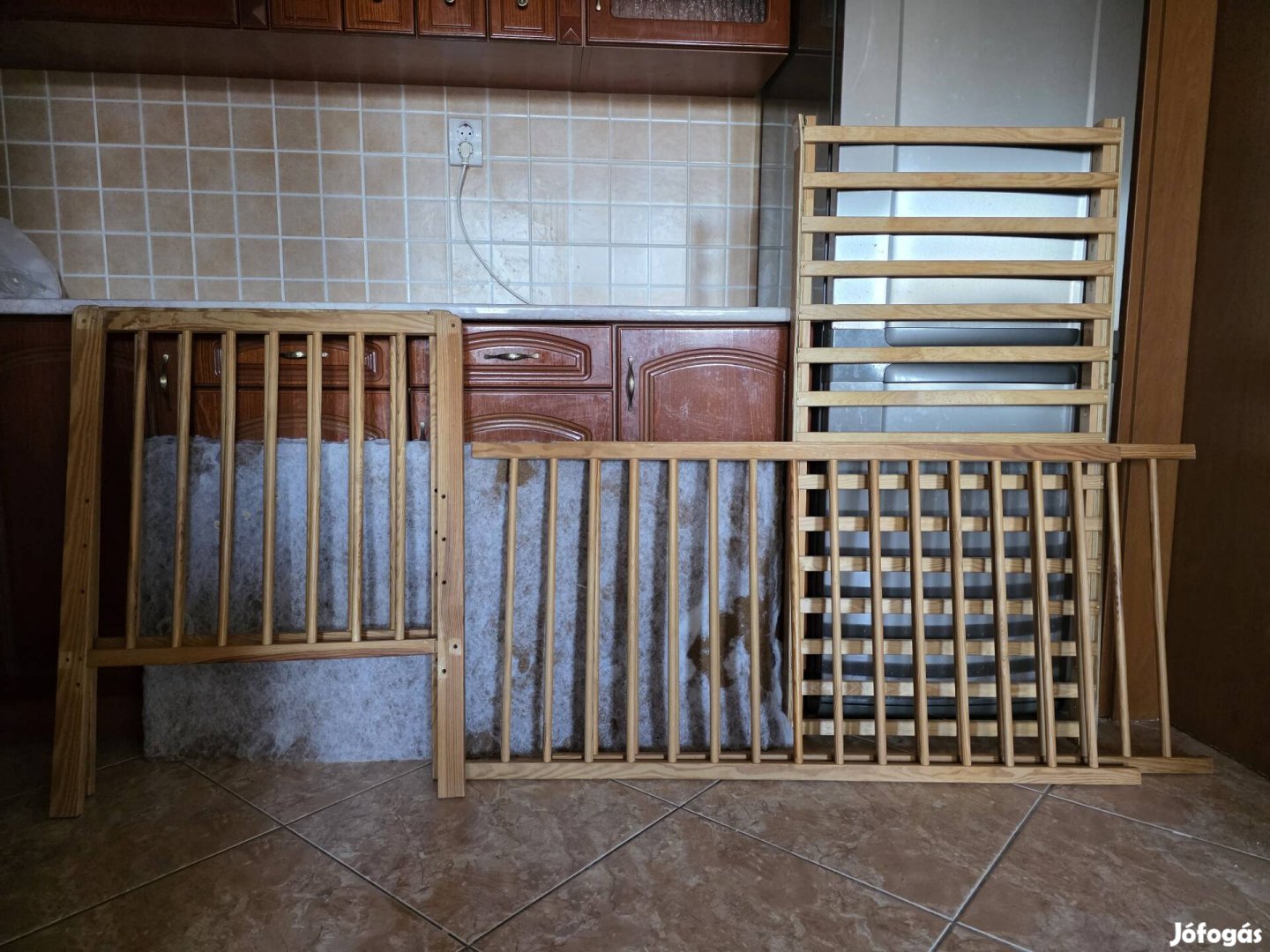 Állítható magasságú rácsos kiságy matraccal eladó. A jobb alsó sarkán a csavarbefogatási pont megerősítést igényel.