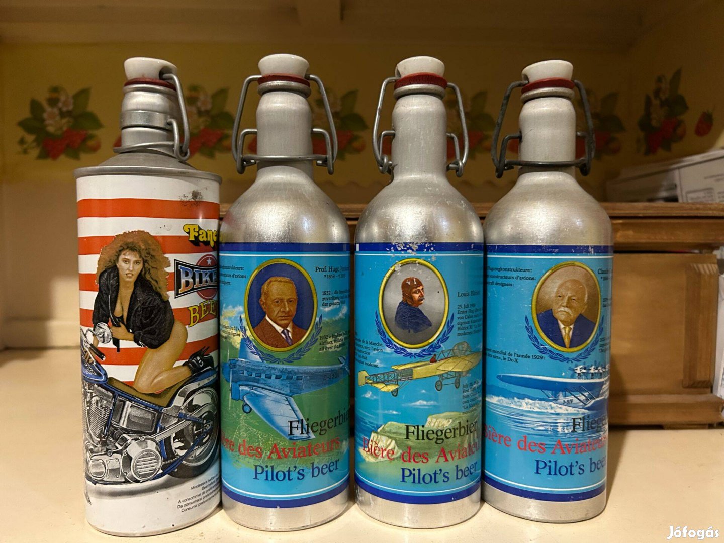 A fotókon látható 9 darab aluminium söröspalack egyben eladó.