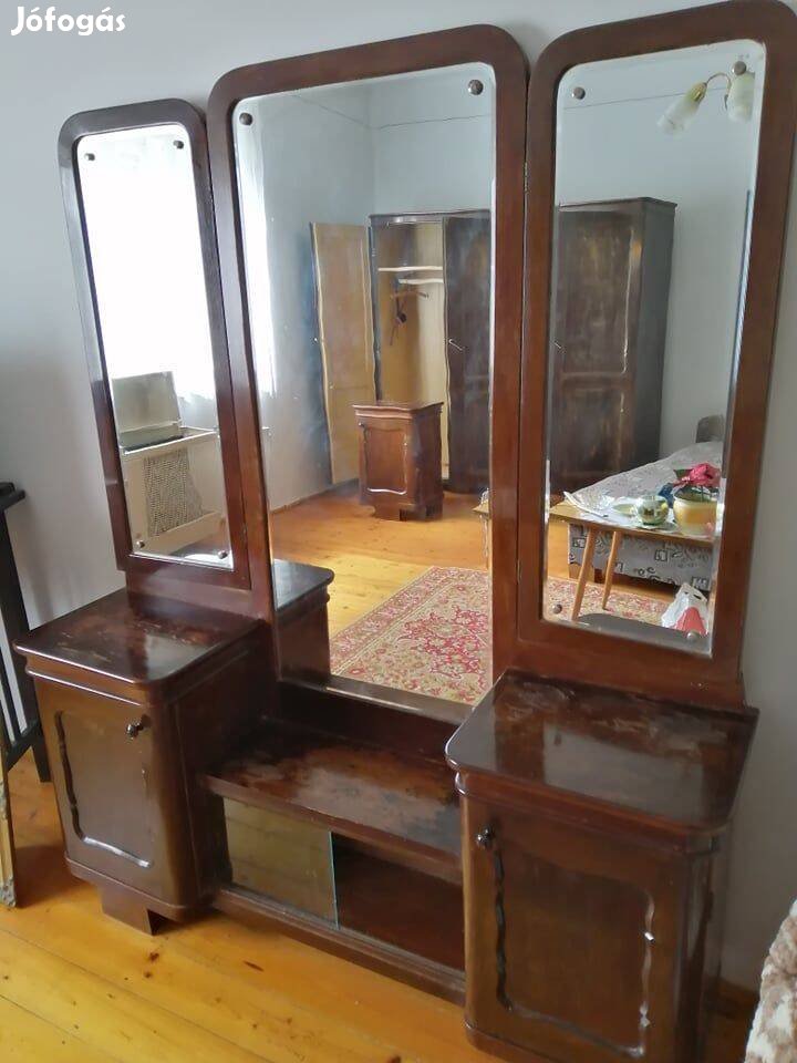Eladó egy antik fésülködő asztal két hozzáillő éjjeliszekrénnyel.