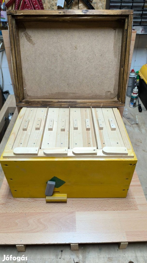 Eladó 4 rekeszes, 39,5 cm x 29 cm x 23 cm méretű, új anyapároztató, méhanya pároztató kaptár új keretekkel. 2 db van belőle.