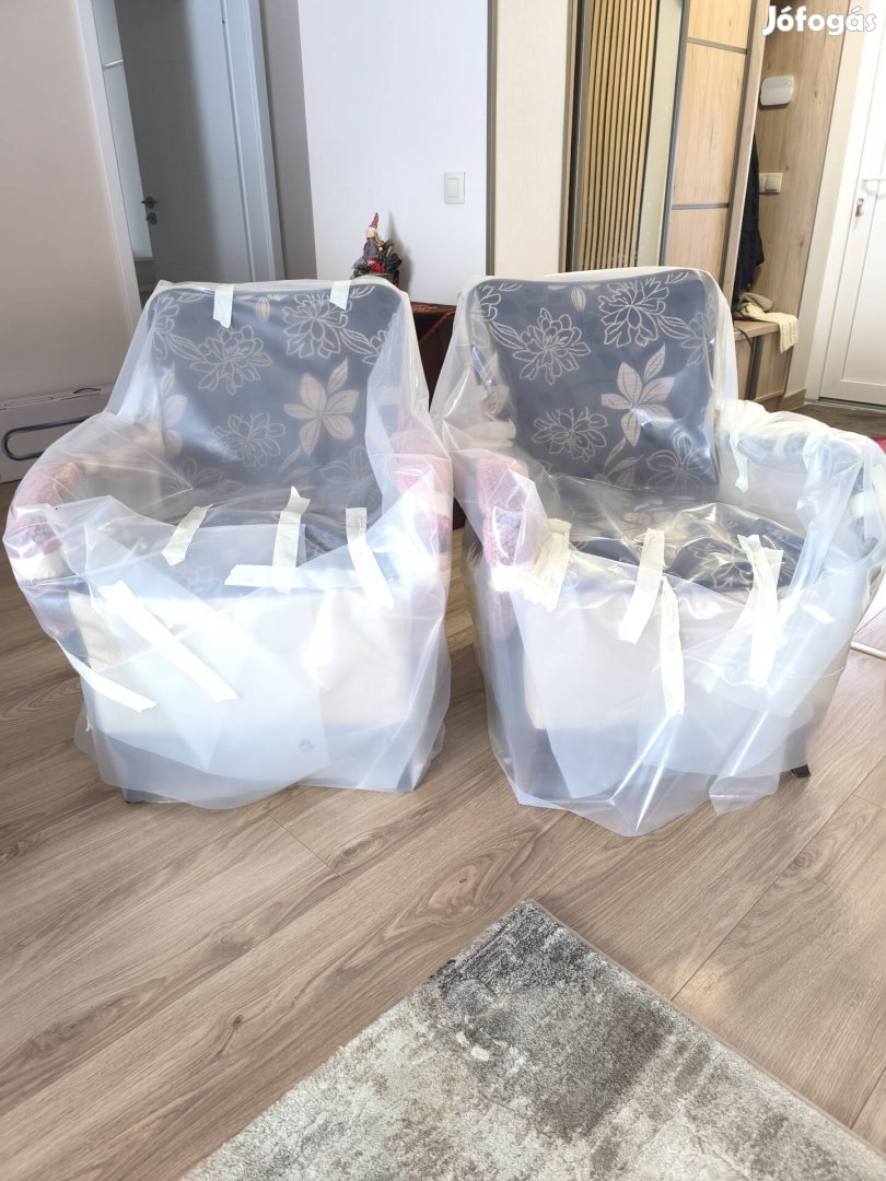 Art Deco fotel 2 db, mely újra kárpitozva, fa részei felújítva, fényezve, jó állapotban eladó, csak egyben vihető. A bútor állagára tekintettel személyes átvétel indokolt.