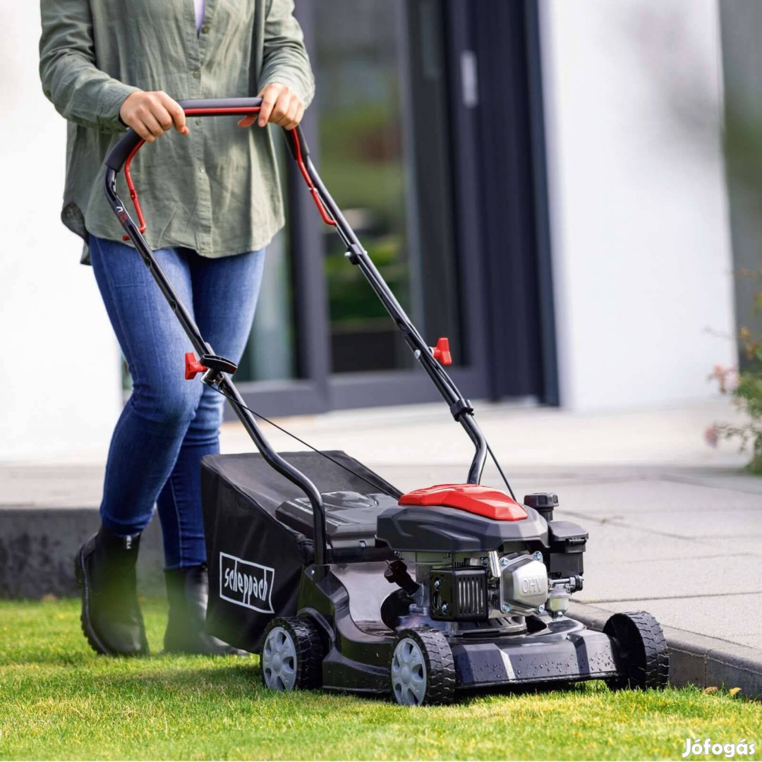 A Scheppach PML40-132P benzinmotoros fűnyíró 40 cm-es vágásszélességével robusztus és hatékony segítőtárs akár 600 m-es kertekbe. Az erőteljes 2,4 kW / 3,3 LE teljesítményű, 4 ütemű benzinmotor gyors haladást tesz lehetővé. A nagy, 35 literes fűgyűjtő bőséges helyet biztosít az összegyűjtött nyesedéknek. A háromfokozatú vágási magasságállítás (3066 mm) optimális eredményt biztosít.