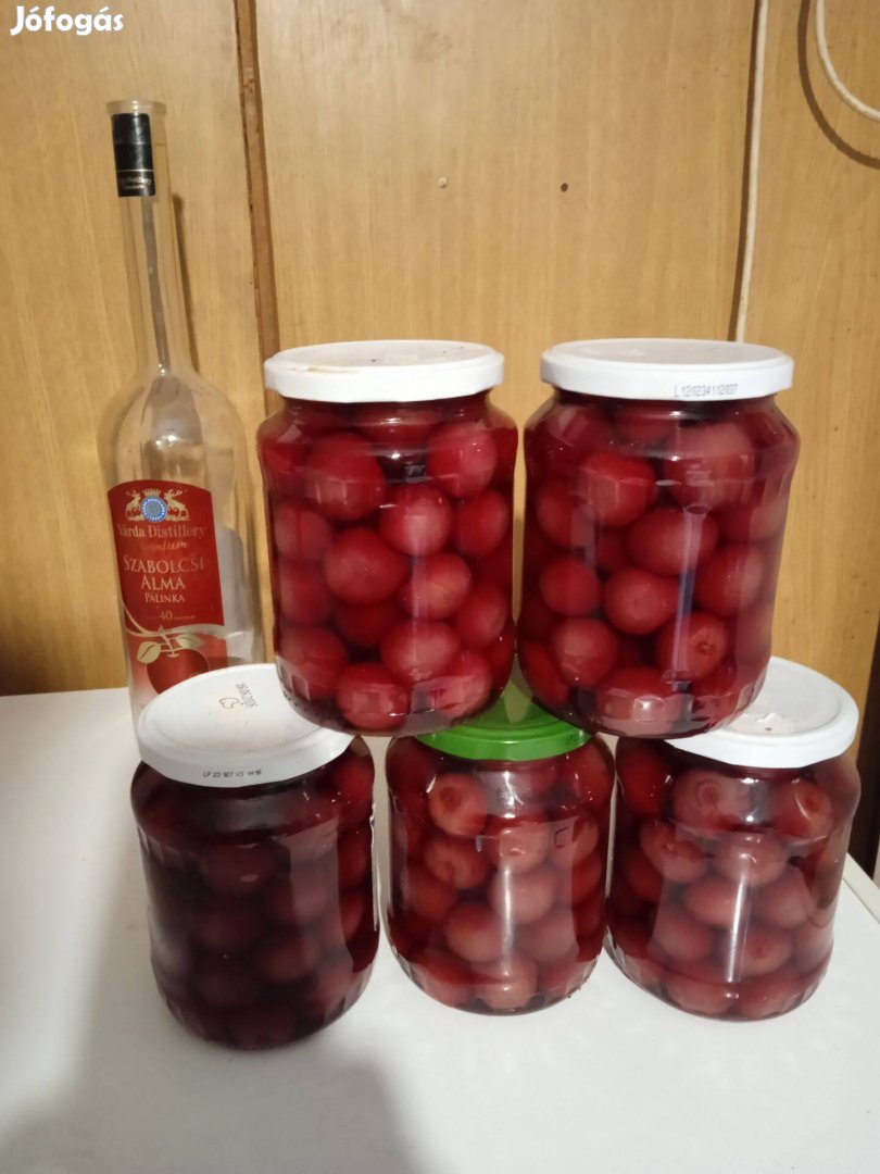 Eladó cseresznye befőtt cukor és tartósítószer nélkül készült befőzőautomatában.