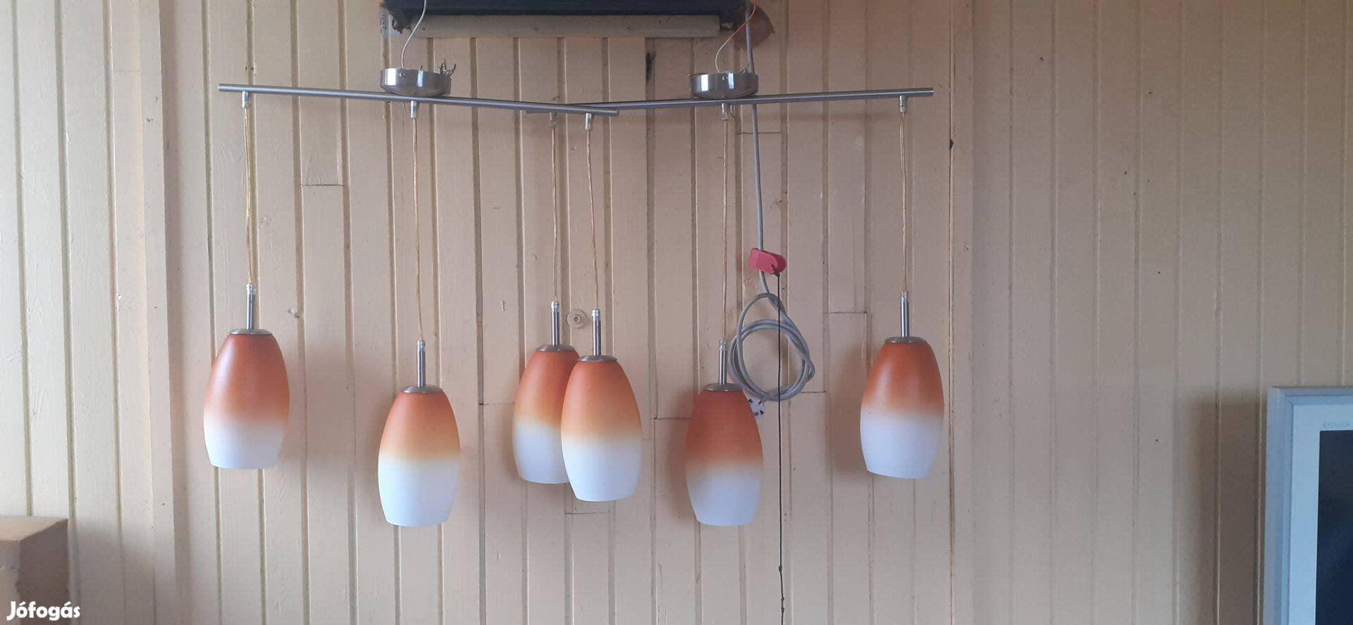 Eladó a képen látható 2 db. Rábalux 3 búrás, bronz mennyezeti lámpa, újszerű állapotban. A tartó cső hossza 60 cm, a hosszabb függő is 60 cm-es.