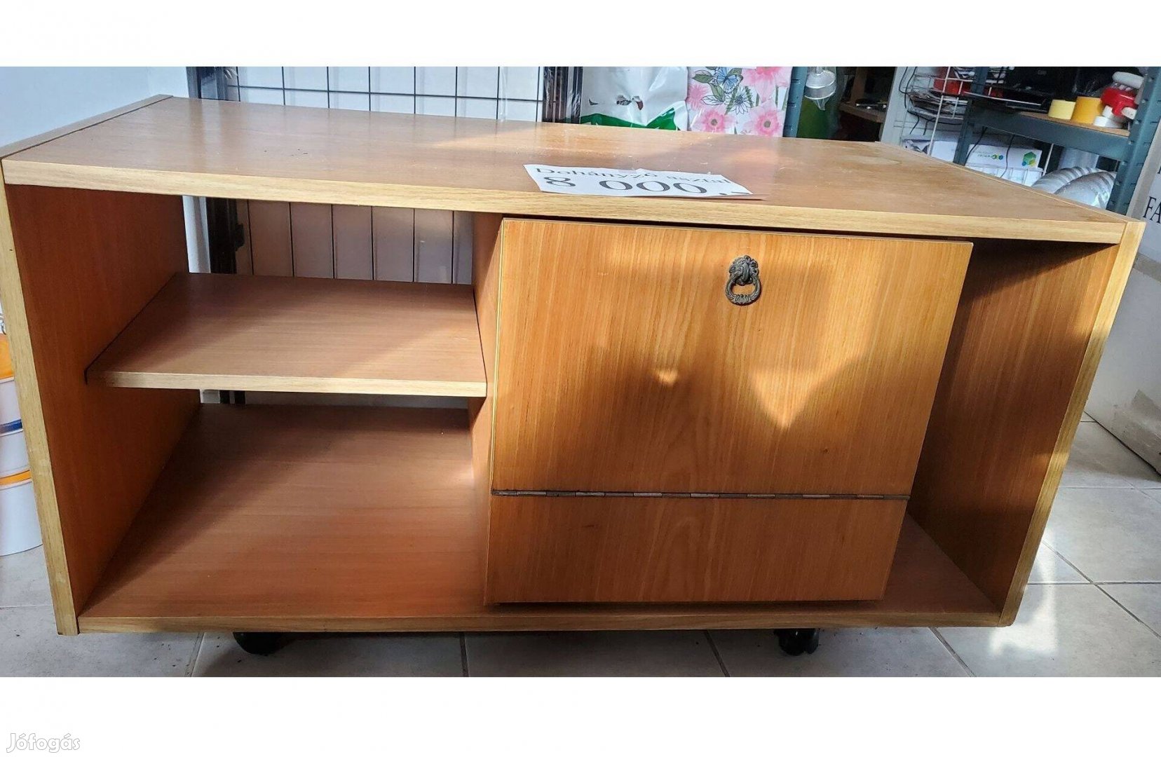 2 oldalsó tároló, amiből az egyik polcos.