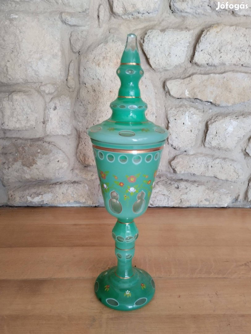 Hibátlan állapotu, fedeles gyönyörű mintás, szép formatervezett, impozáns, üveg serleg, kupa.