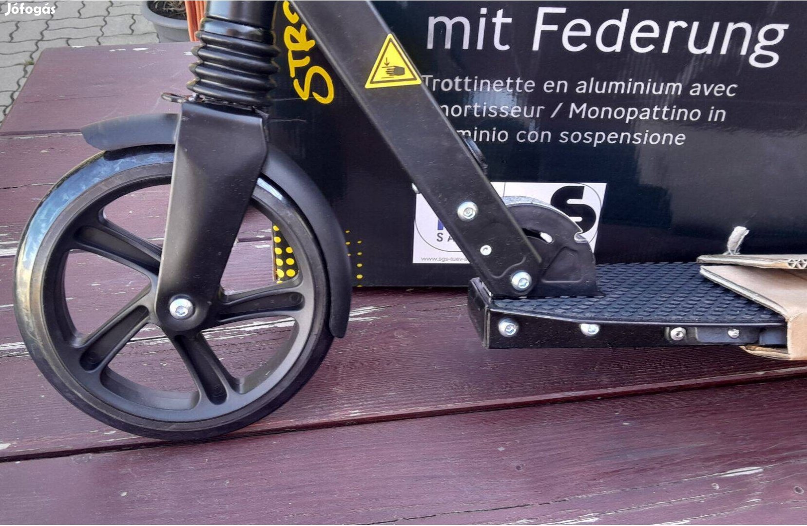 Eladó a képeken látható Új alu roller. A kormány kézifékkel és ergonomikus fogantyúkkal ellátott. Nagy 20 cm-es kerekekkel. A kormány magassága 108 cm-ig állítható. Csúszásmentes