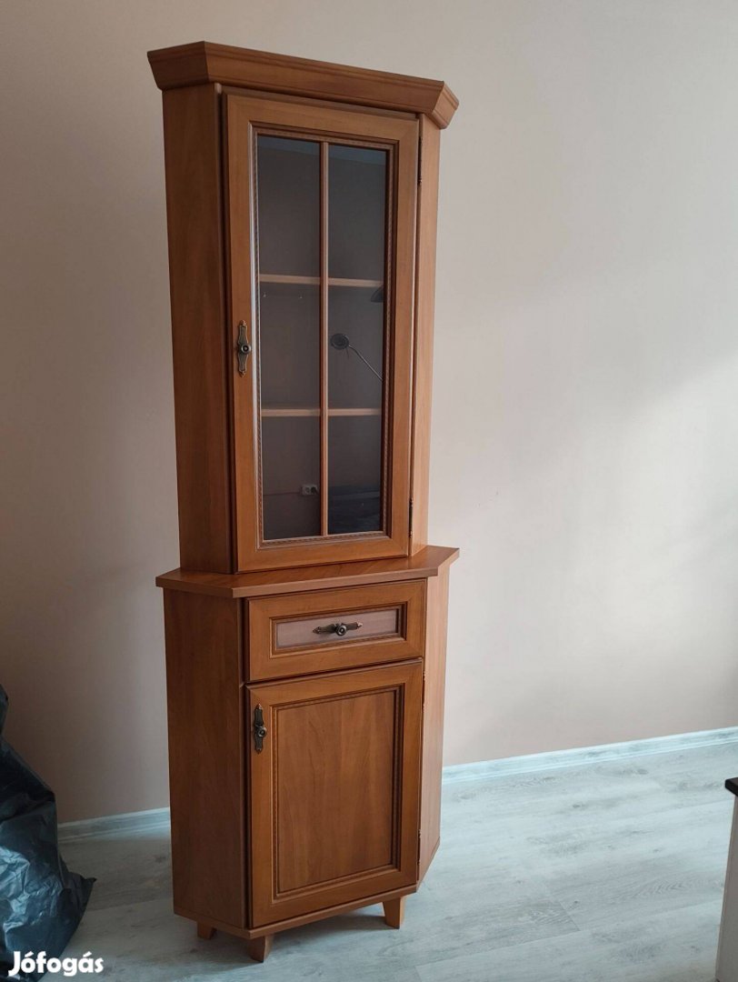 Klasszikus stílusú, üveges felsőrésszel, alsó tároló résszel és fiókkal.