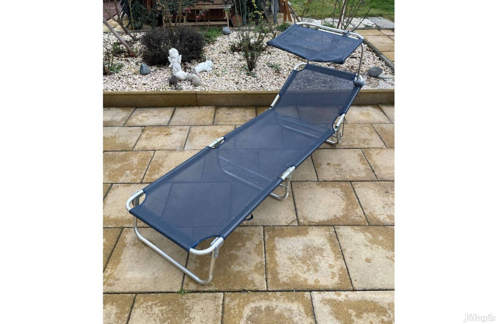 Eladó a Képeken Látható jó állapotban lévő Erős Alu Textil Napozóágy Nyugágy Napellenzővel Szürke