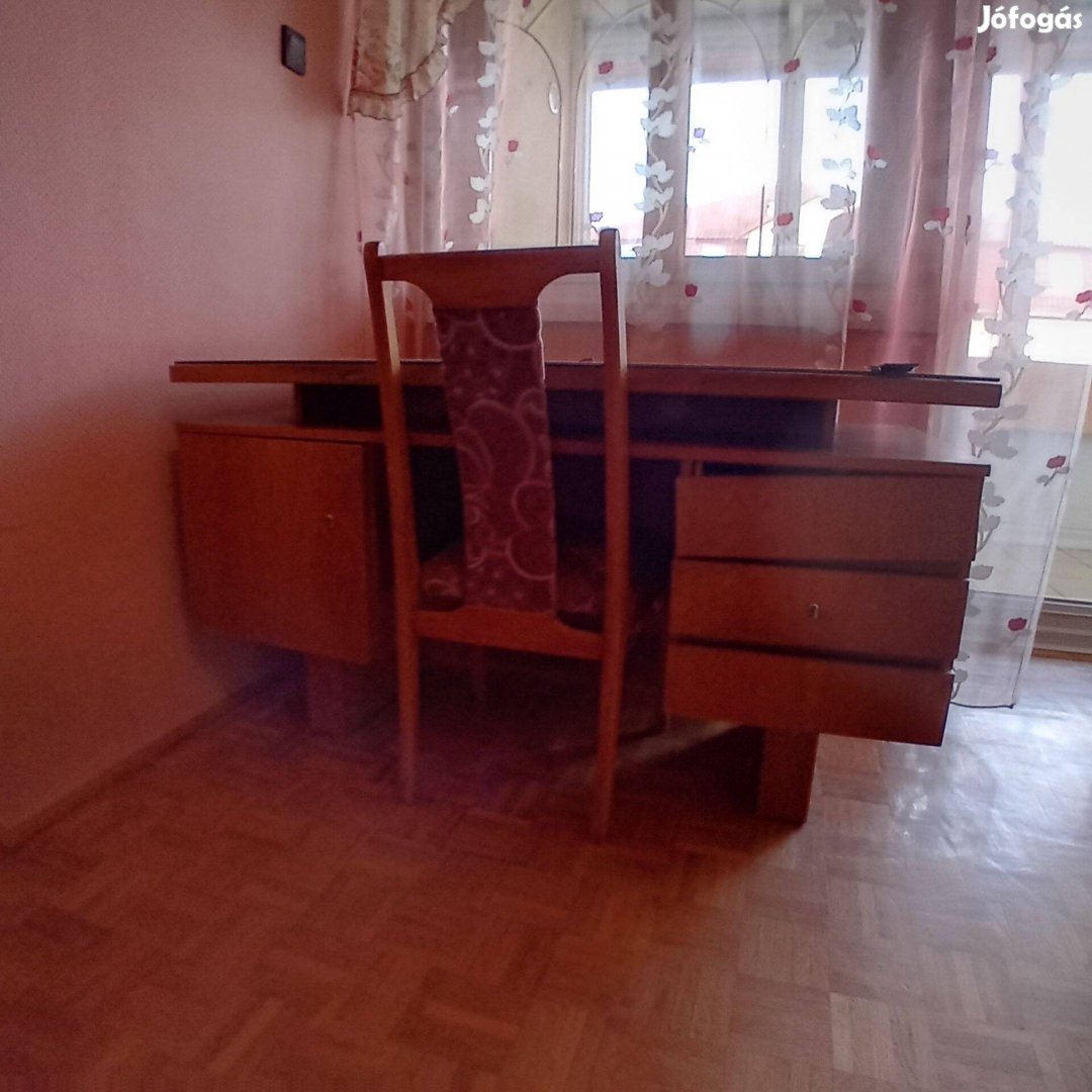 Eladó egy nagy méretű, fából készült retro jellegű erős, masszív íróasztal/rajzasztal nevetséges áron tetején üveglappal! 130 cm széles! Székkel együtt!