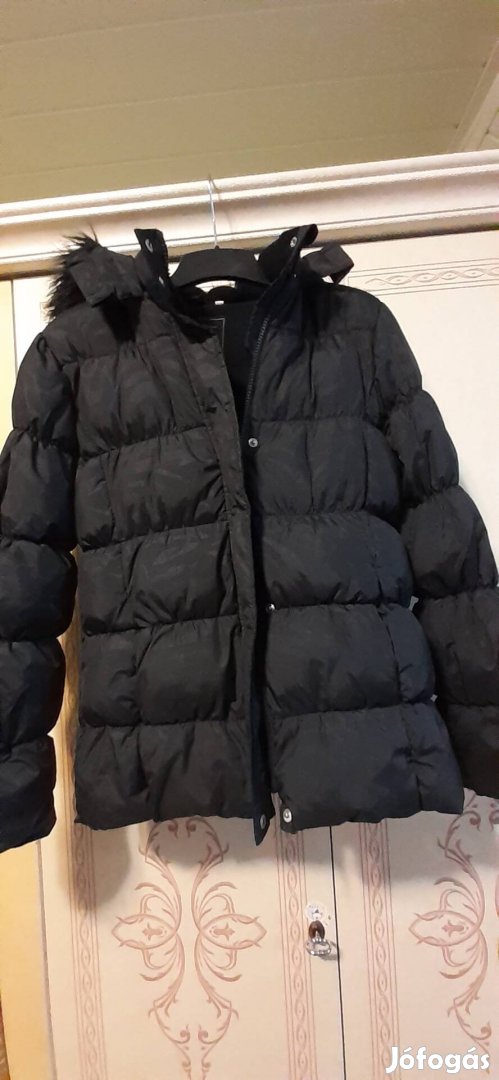 C&A termék. Téli kabát, 158-as méretben. Kapucni nem levehető. Két oldalsó zsebe van. Hossza 61 cm. Ujja 60 cm. Mellnél átmérő: 43 cm.