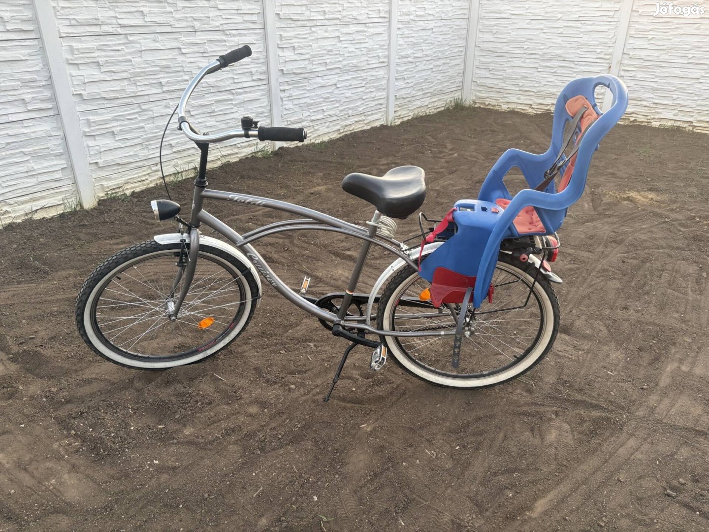 Eladó a képeken látható kényelmes, jó állapotú férfi kerékpár, hátsó gyereküléssel. Tökéletes választás városi közlekedéshez vagy közös biciklizésekhez a gyermekkel. A gyerekülés biztonsági övvel és lábtartóval van felszerelve.