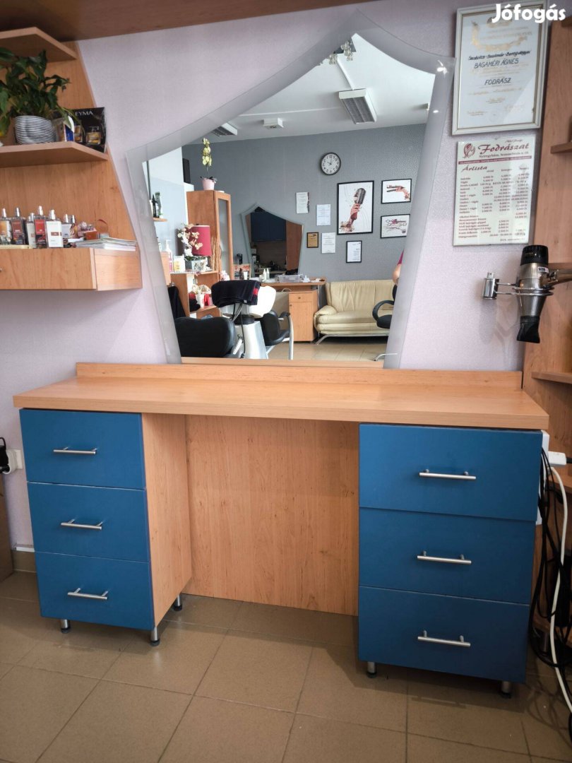 Kitünő állapotban lévő fodrász pult és tükör 2db, két fodrász állásnak eladó.
