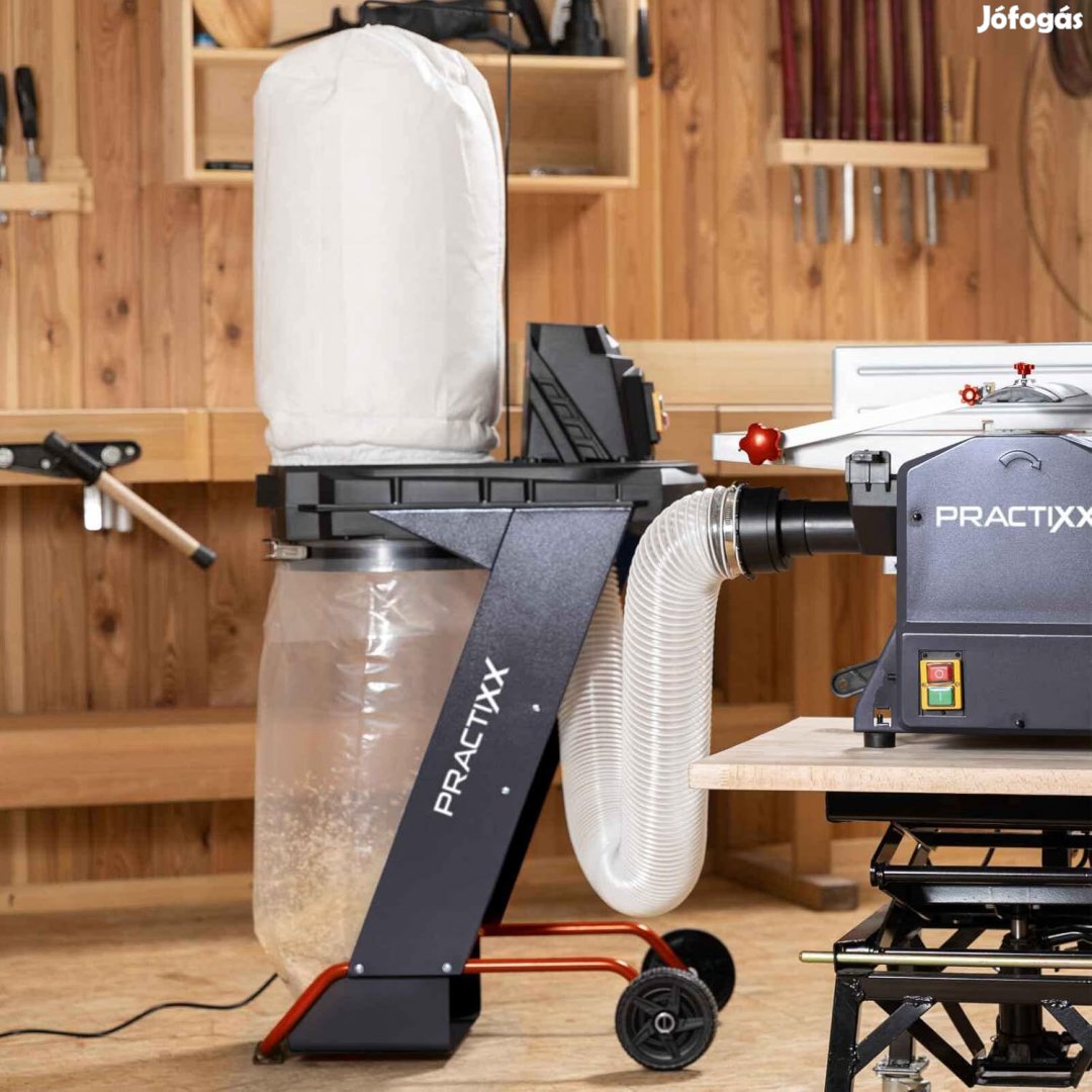 Aki a műhelyében fával dolgozik, az ismeri a problémát: fűrészelés, csiszolás vagy gyalulás finom por keletkezik, amely nemcsak a munkafelületet, hanem a helyiség levegőjét is szennyezi, egészségre ártalmas. A Practixx PX-AS-550 elszívórendszere megbízhatóan szívja el a forgácsot és a port, és így biztosítja a munkadarab tiszta rálátását. A folyamatos szívás növeli a gép működési idejét és jelentősen csökkenti az egészségügyi kockázatokat. És ez tisztán tartja a műhelyt is. A PX-AS-550 elszívórendszer nagy teljesítményű, 550 W-os motorja elegendő teljesítményt biztosít ahhoz, hogy a hobbiműhelyt portól és fűrészportól mentesen tartsa, amely szalagfűrészekkel, asztali marógépekkel és görgős fűrészekkel végzett munka során keletkezik. Az 1150 m 3 /h szívási teljesítménynek köszönhetően a PX-AS-550 folyamatosan és megbízhatóan porszívózza fel a port, fűrészport és faforgácsot. A 75 literes gyűjtőzsák nagy mennyiségű chips tárolására is alkalmas, és ritkán kell üríteni. Az elszívórendszer segítségével nemcsak a munkadarab rálátása marad tartósan akadálytalan, és a munkahely mindig kellemesen tiszta, de a légutakat is kevésbé terheljük. A szennyezett levegő gyorsan megtisztul az 1 m 2 -es szűrőfelületnek és a 100 mm-es tömlőátmérőnek köszönhetően. A 2 méter hosszú szívótömlő is elég hosszú ahhoz, hogy ne kelljen állandóan áthelyezni a szívórendszert. A praktikus hajtószerkezetnek köszönhetően az elszívórendszer is különösen könnyen szállítható, ezért rugalmasan használható. A szállítási terjedelemben található 4 részes adapterkészlet lehetővé teszi a kisméretű készülékek széles skálájához való csatlakoztatás