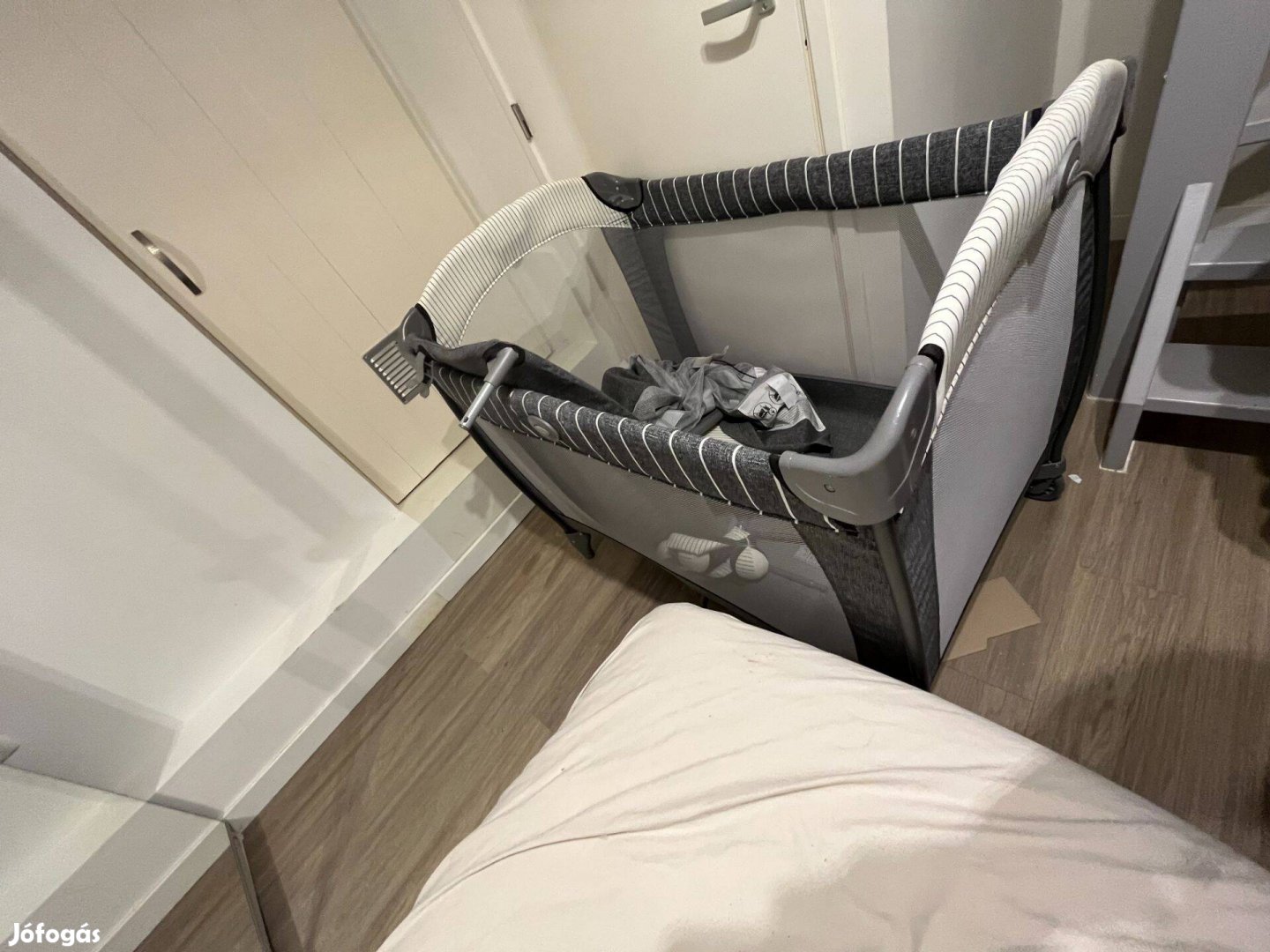 Graco újszerű hordozható, összecsukható utazó babaágy újszerű, alig használt, hibátlan és kopásmentes állapotban eladó. Kizárólag egy helyen, szobában volt használva és így valójában a funkciója kihasználatlan maradt. Tartozik hozzá összecsukható puha ágybetét, pelenkázó, zenélő és világító egység, rovarháló, vizuális baba játék, hordozható táska. Két kerékkel ellátott a könnyebb és csendesebb mozgatás miatt. Full extrás legnagyobb felszereltségű babaágy. Külföldre költözés miatt maradt itthon. Posta megoldható. Nyíregyházán átvehető. Szállítás a Jófogáson keresztül beállítva.