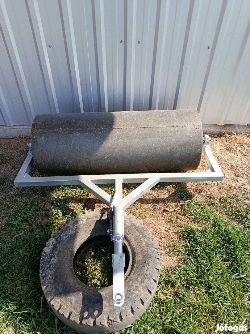Gyephenger tömörítő henger fűnyíró traktor után vontatható eladó. Szélessége 100cm, átmérő 40cm súlya kb 100-120kg lehet tölteni vízzel vagy homokkal. Jelenleg homok van benne! Csapágyházas komoly darab. Nem műanyag! Örök darab! Fűvesitéshez terep rendezéshez ajánlott!