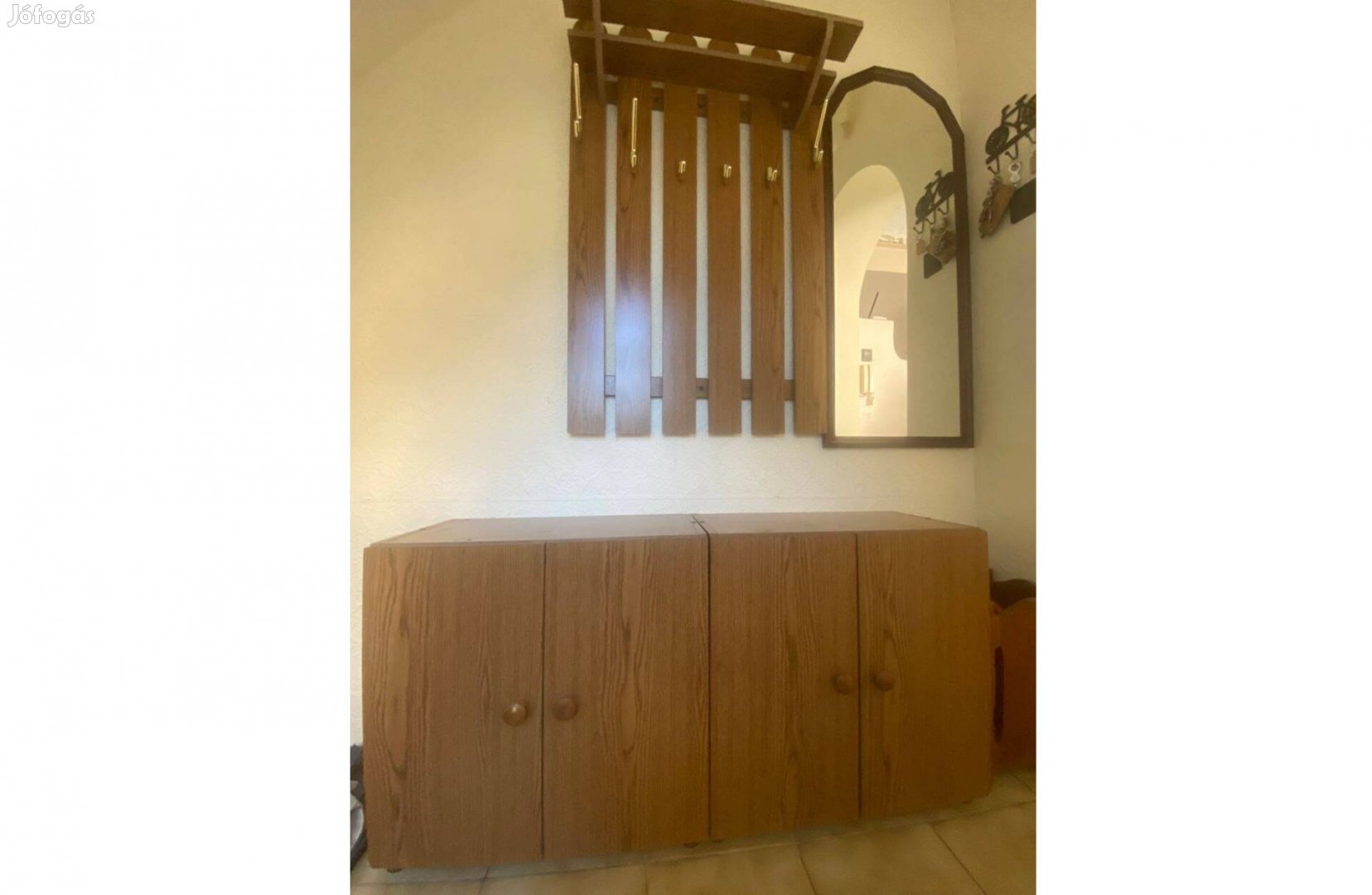 Használt előszobaszekrény, falifogas, tükör és esernyőtartóval eladó.