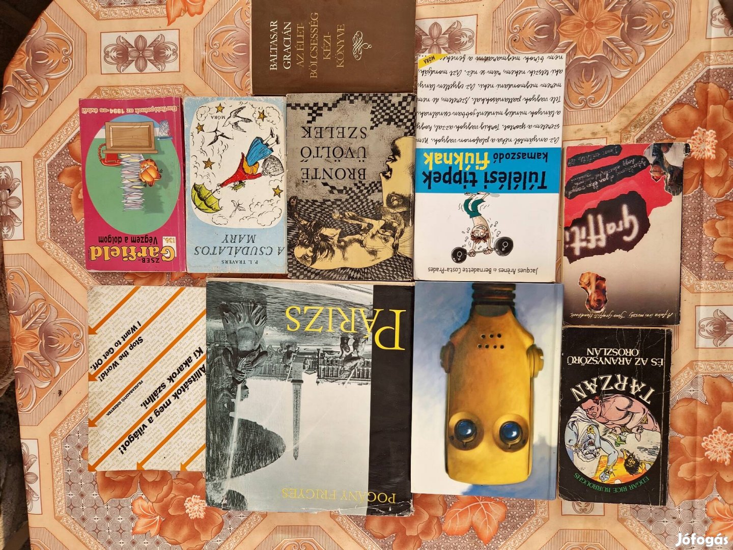 Használt könyvek, több műfaj, és szerző.