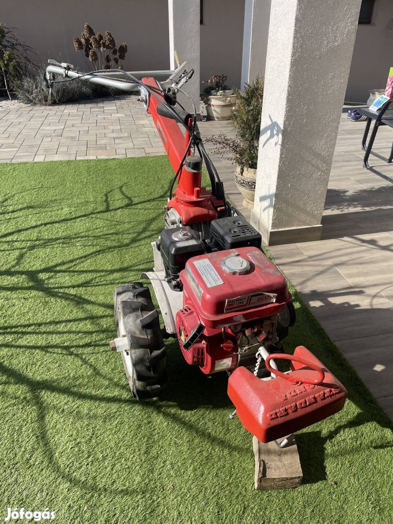Eladó Honda Mio Standard F600y (évj 1981) 4 ütemű, 220 köbcentis, ~4,5 lóerős, 3+1R sebességes kerti traktor jó állapotban. Irányváltó, kormányról vezérelhető. Tartozékok: Orrsúly, 2db keréksúly, csoroszlya, 2db gumikerék, 2db körmös kerék, 6db rotációs kapatag. Új karburátor, meghajtó-feszítőcsapágy, friss olajok, plusz egy új tartalék motor. Szállításban tudok segíteni, info csak telefonon.