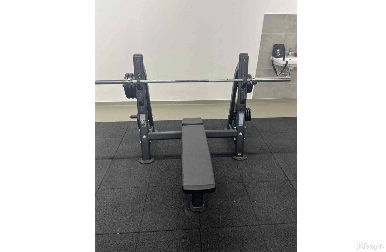 Masszív vázszerkezetű, nagy terhelhetőségű olimpiai egyenes fekvenyomó pad.