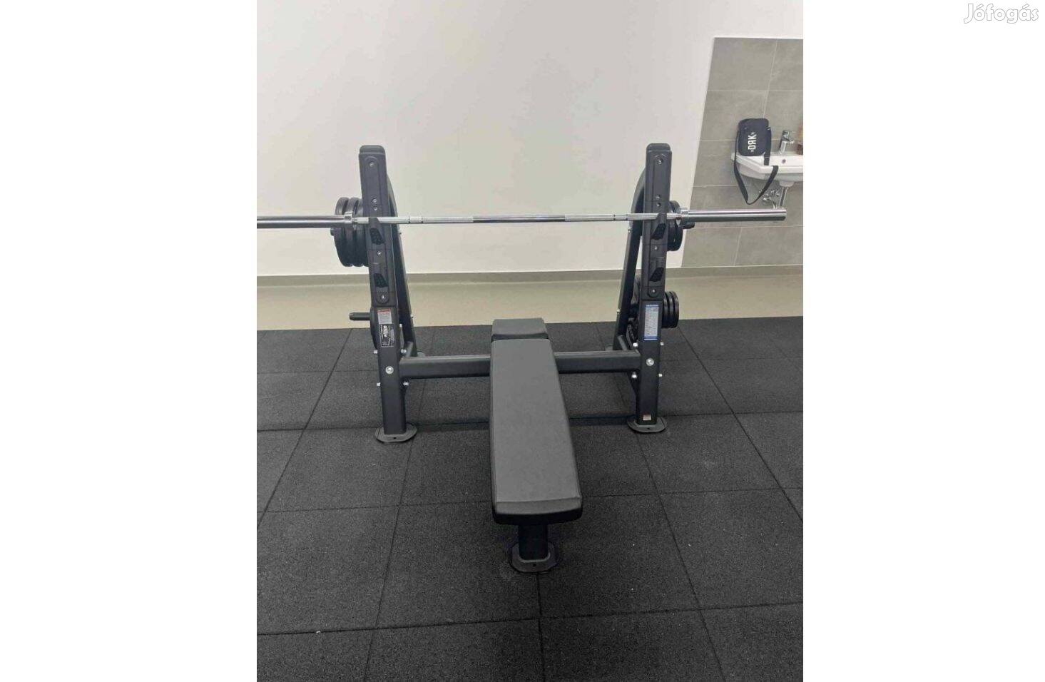 Masszív vázszerkezetű, nagy terhelhetőségű olimpiai egyenes fekvenyomó pad.