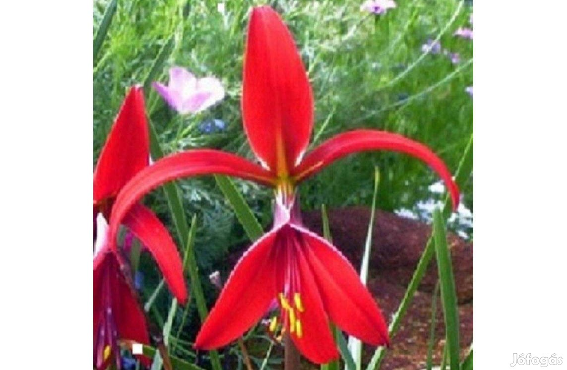 A Jakabliliom (Sprekelia formosissima) az amariliszfélék családjába tartozó hagymás évelő, sötét skarlátpiros virágaival elegáns és különleges virága lehet kertünknek. Amennyiben szobában szeretnénk kezdeni a hagymák tavaszi hajtatását, Márciusban ültessük jó tőzegalapú virágföldbe hármasával, a fagyosszentek után kitehetjük a szabadba. Szabadföldbe csak Április végén ültessük, ősszel az első fagyok előtt mindenképp szedjük fel a hagymákat. Megtisztítva száraz 15-20 fokos helyen teleltethető. Egy Jakabliliom hagyma Ára: 850 Ft, amit postázni tudok a vásárlónak megfelelően.