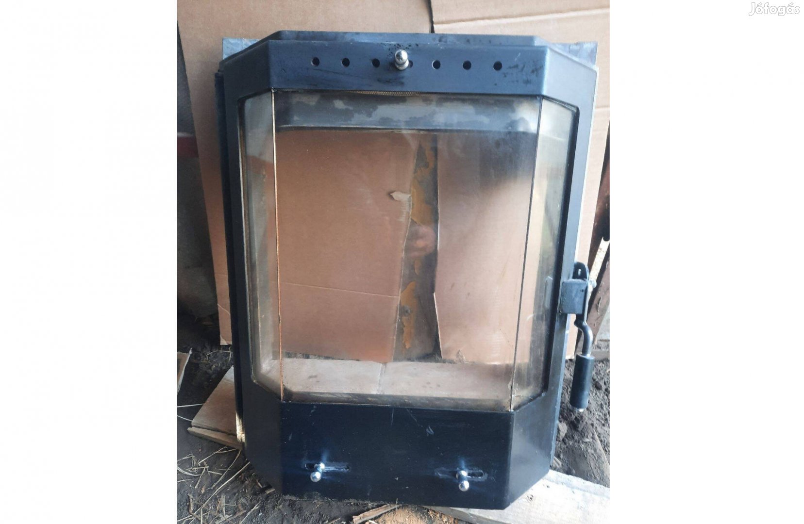 Használt ,bontott kandalló ajtó.Egyik üveg sérült.Méret :50x62x17 cm