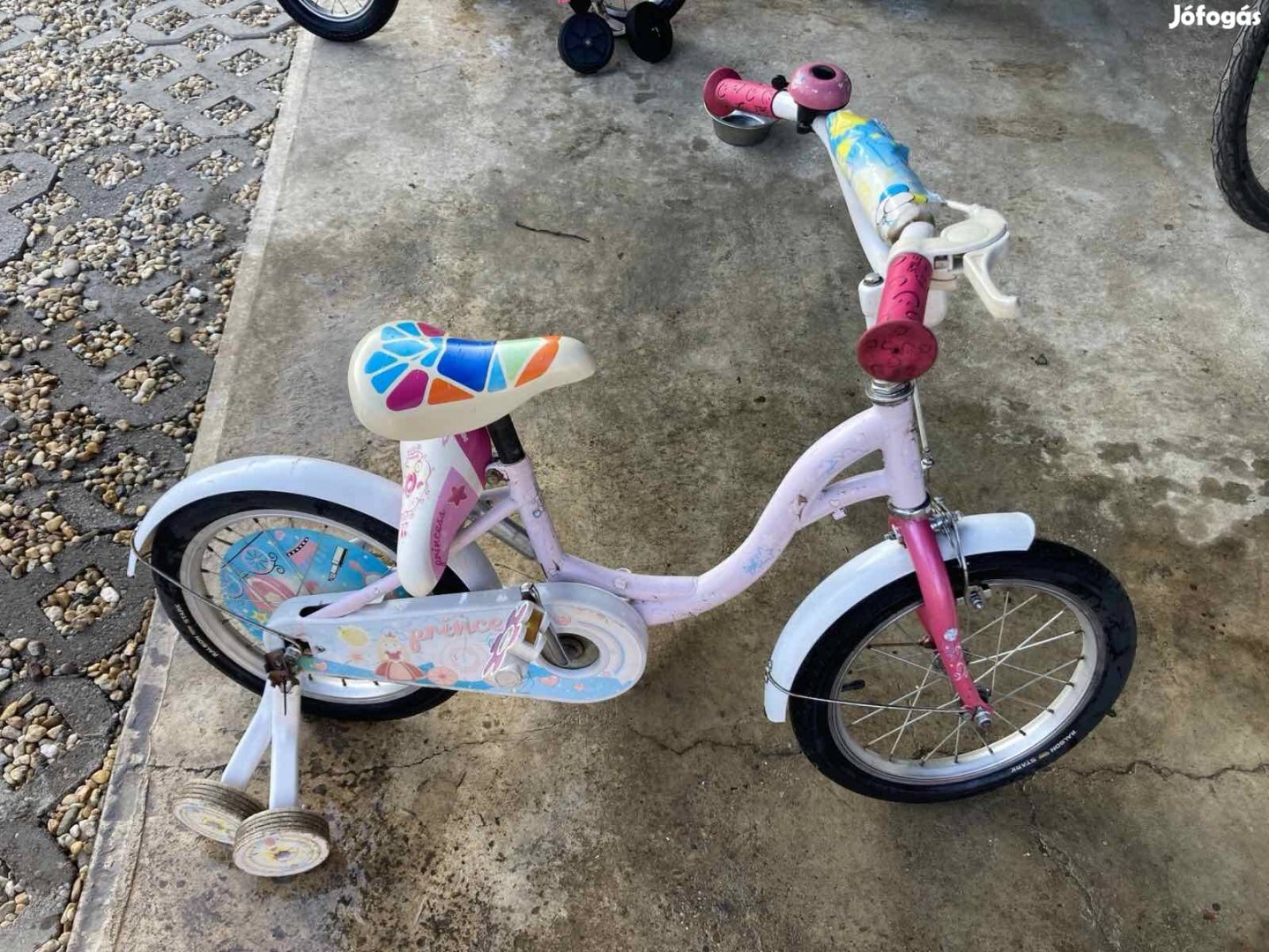 Pótkerékkel eladó kislány bicikli.