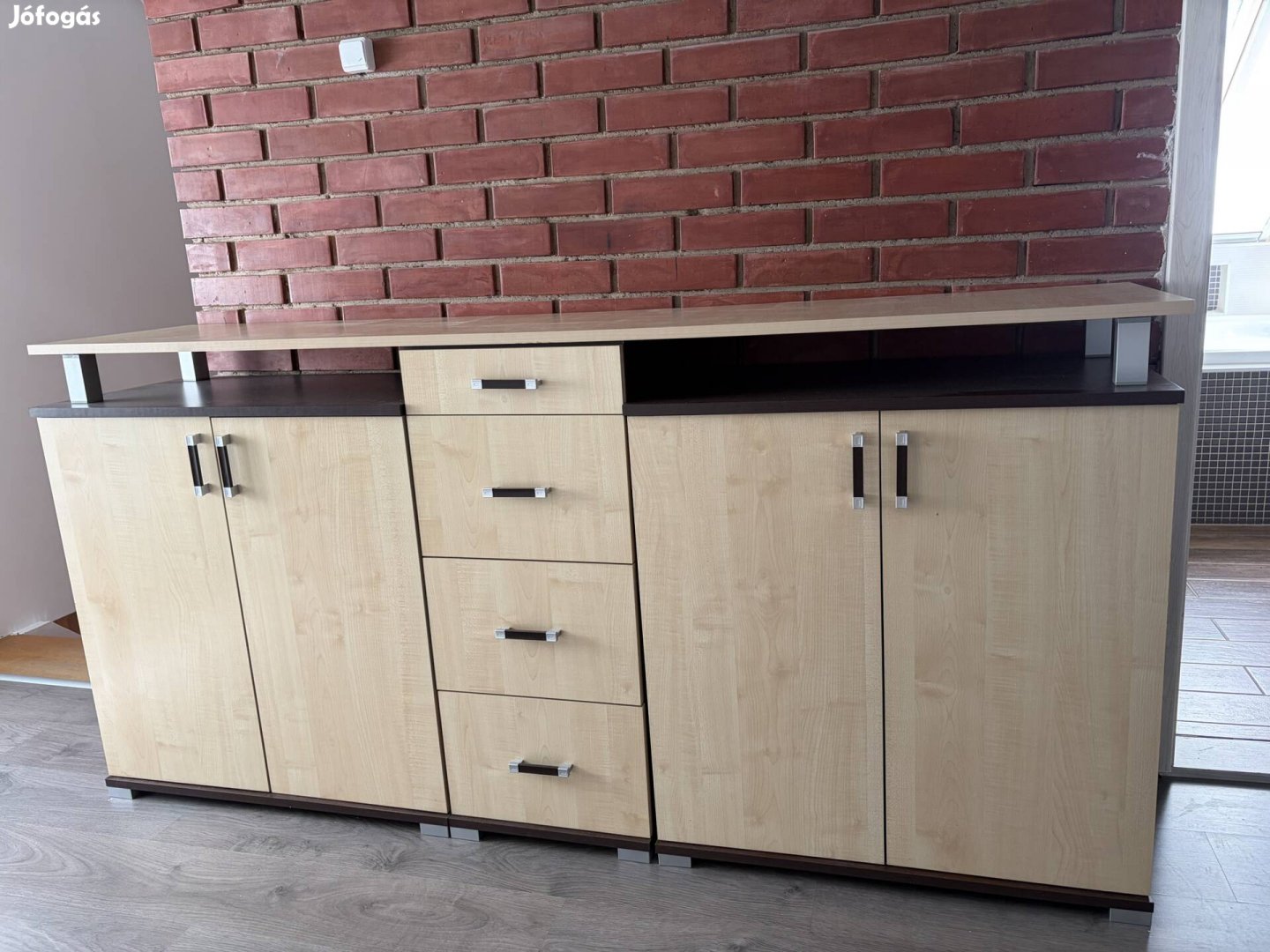 Eladó a képeken látható letisztult, modern stílusú komódot, világos és sötét fa kombinációval.