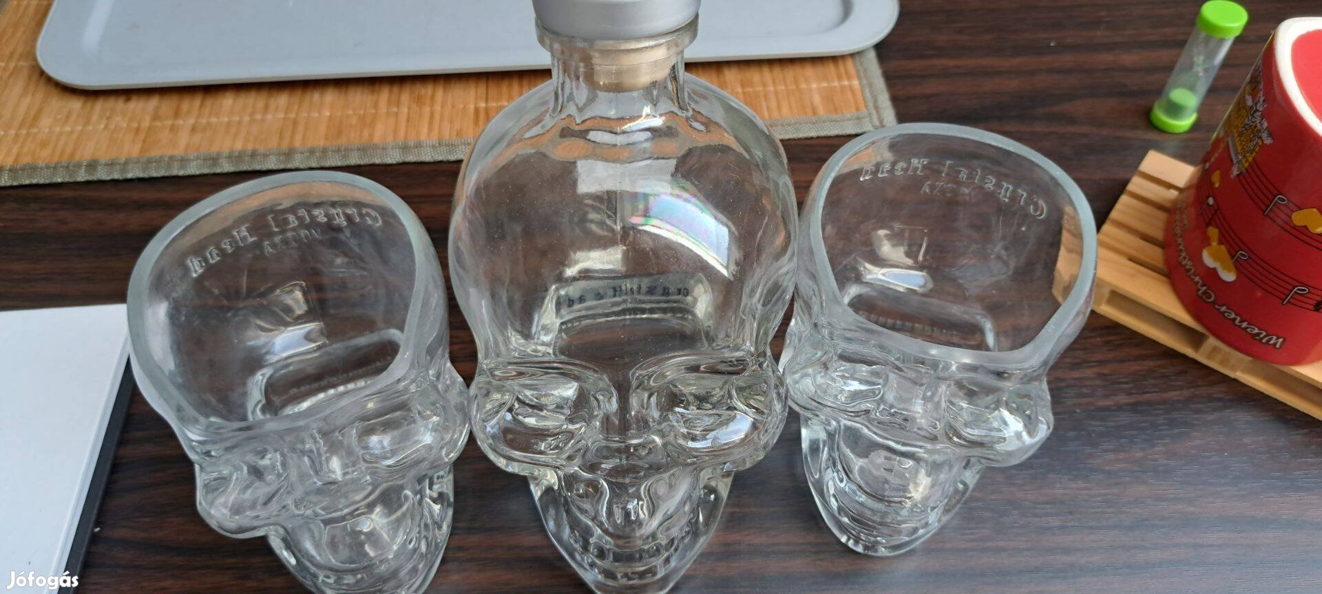 koponya üveg két pohárral