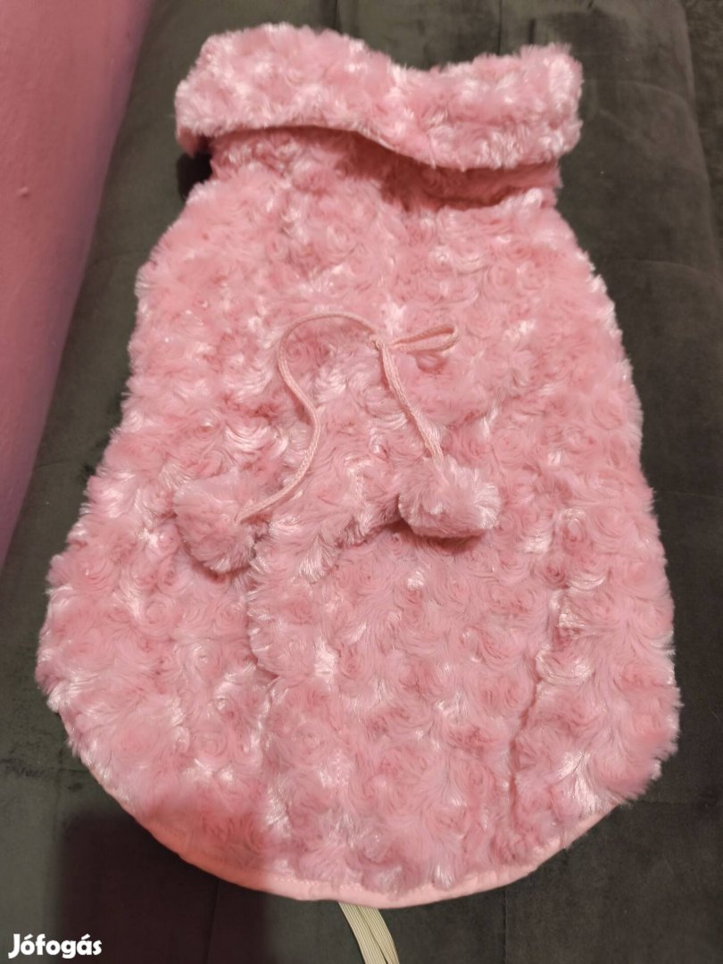 Eladó egy rózsaszín, plüss tapintású kutyaruha, ideális hűvösebb időre.